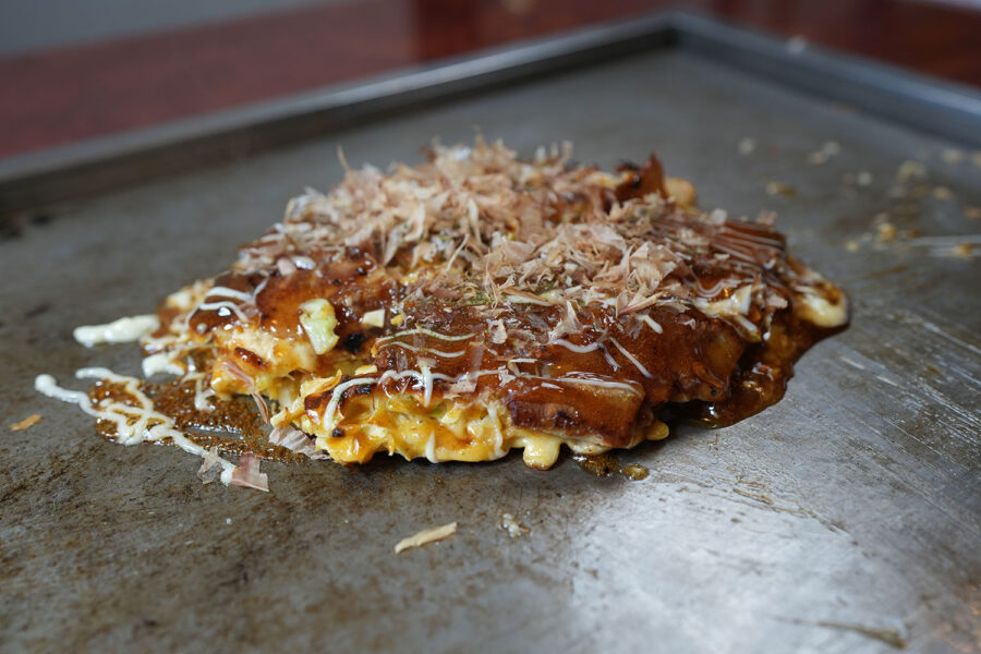 お好み焼きは関西人にとっては、身近で親しみやすく、そして家庭の味です。そこで当店は「究極に柔らかく、味わい深く、それでいて食感がある」というまったく別の方向の新食感お好み焼きを考えました。