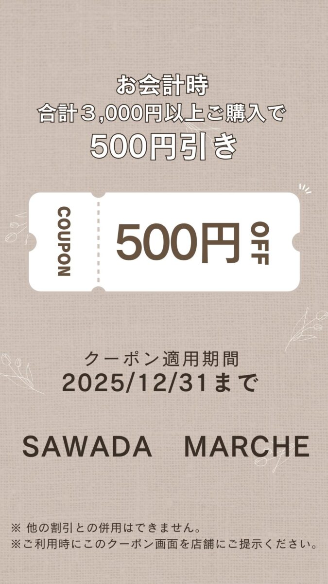 SAWADA MARCHE実店舗では、アパレルブランド向けのお洋服をお手頃な価格(3,000円前後)でご提供しております。
