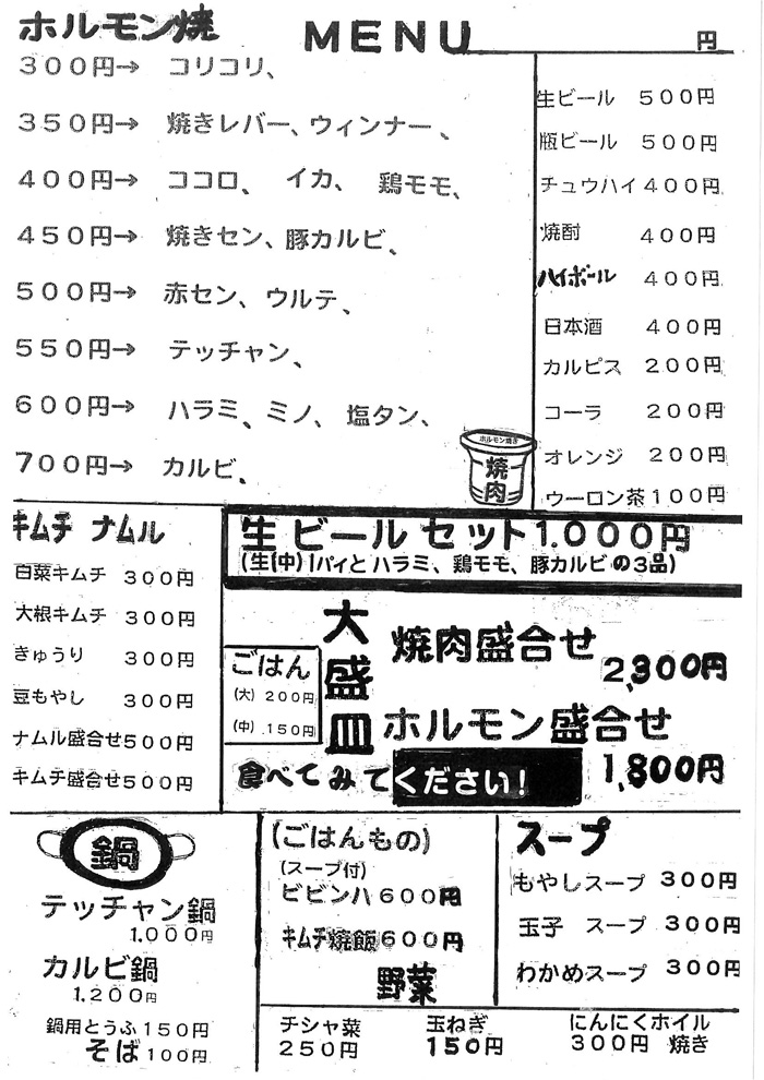 生ビール(中)とハラミ、鶏モモ、豚カルビの3品がセットになってナントたったの1000円!お店の方も利益度外視でやってますとのこと。